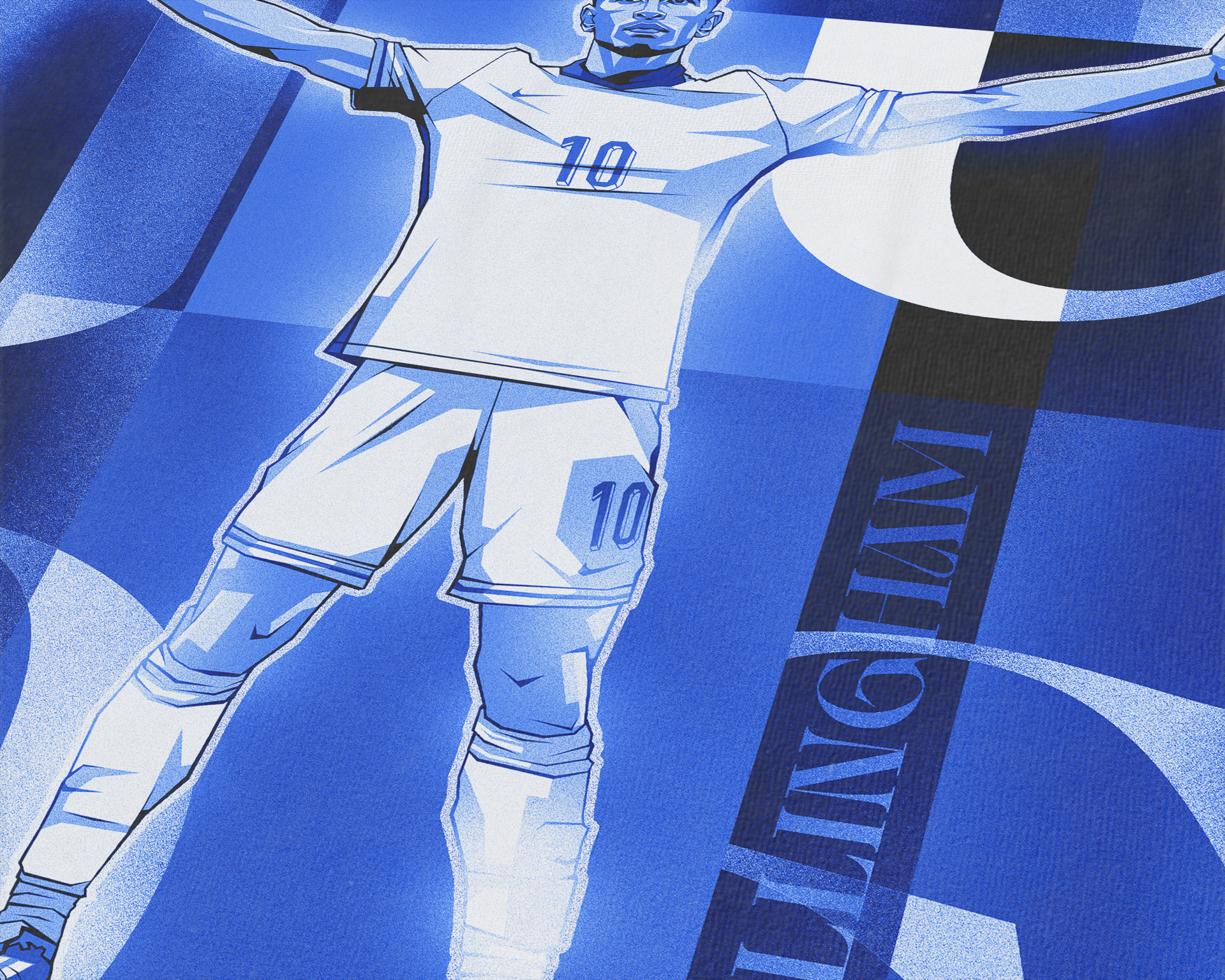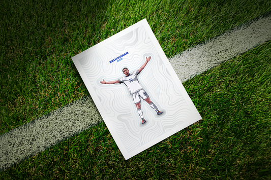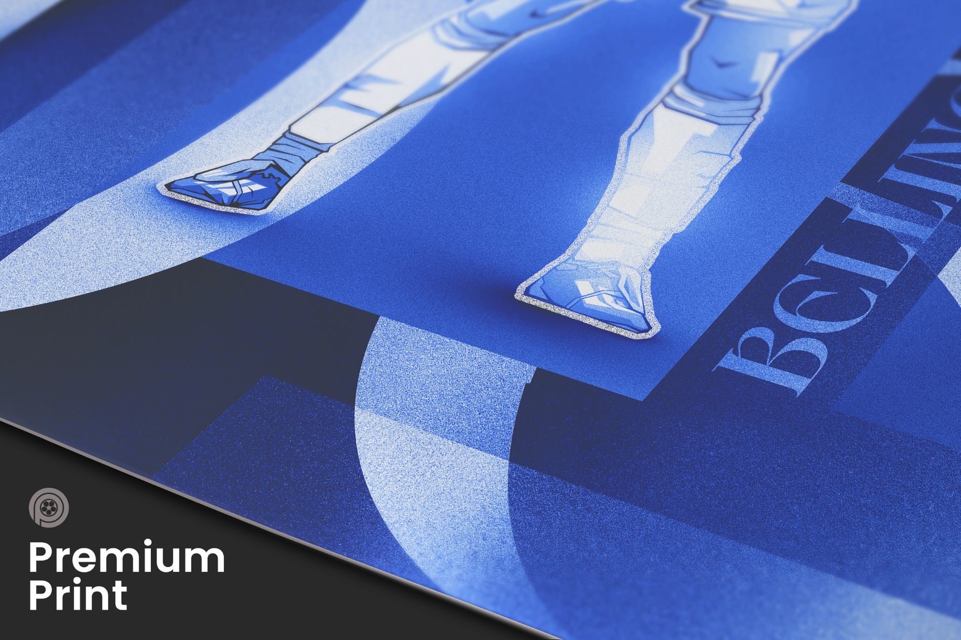 A football art print for fans of Jude Bellingham, our art prints feature unique designs and bespoke illustrations printed on premium quality paper and shipped worldwide. This exclusive print features an art piece of Jude Bellingham in our 'Collage' design, with the England player playing for Real Madrid who currently play LaLiga football. We pride ourselves on using the highest quality paper and printing processes to create our prints, giving you a sharp and colourful piece that can take pride of place on your wall for years to come. Frame not included.