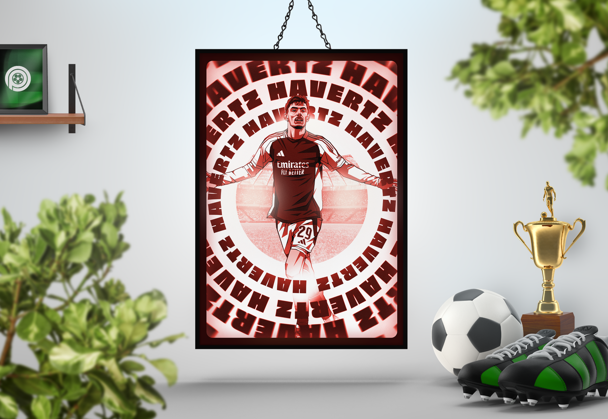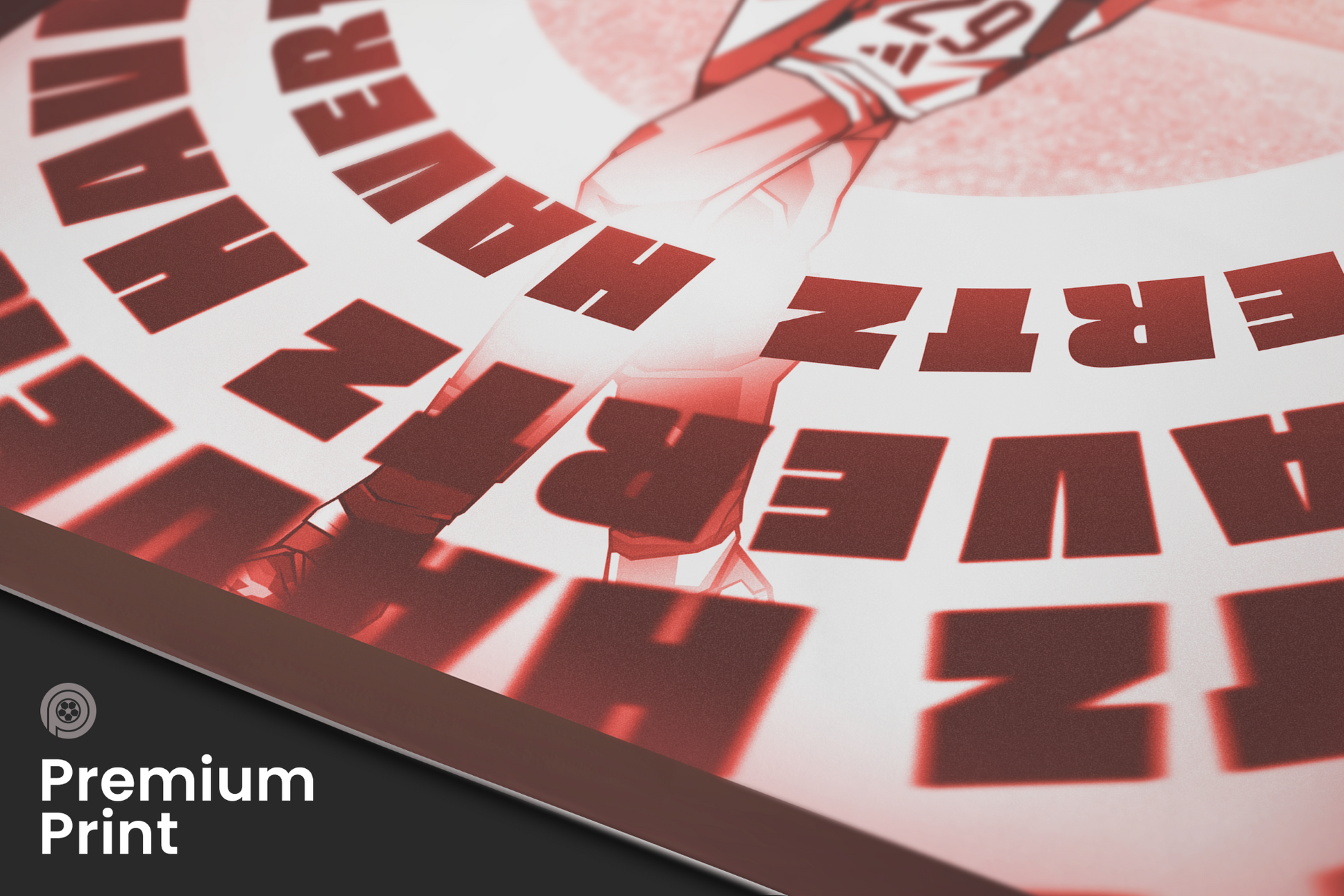 A football art print for fans of Kai Havertz, our art prints feature unique designs and bespoke illustrations printed on premium quality paper and shipped worldwide. This exclusive print features an art piece of Kai Havertz in our 'Radial' design, with the Germany player playing for Arsenal who currently play Premier League football. We pride ourselves on using the highest quality paper and printing processes to create our prints, giving you a sharp and colourful piece that can take pride of place on your wall for years to come. Frame not included.