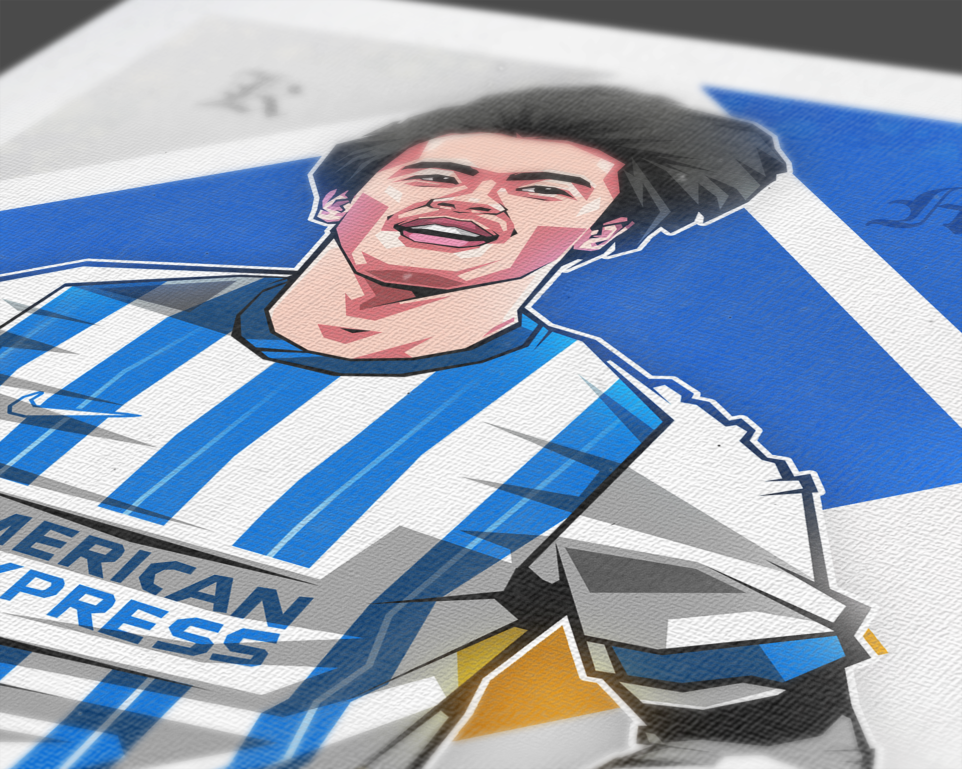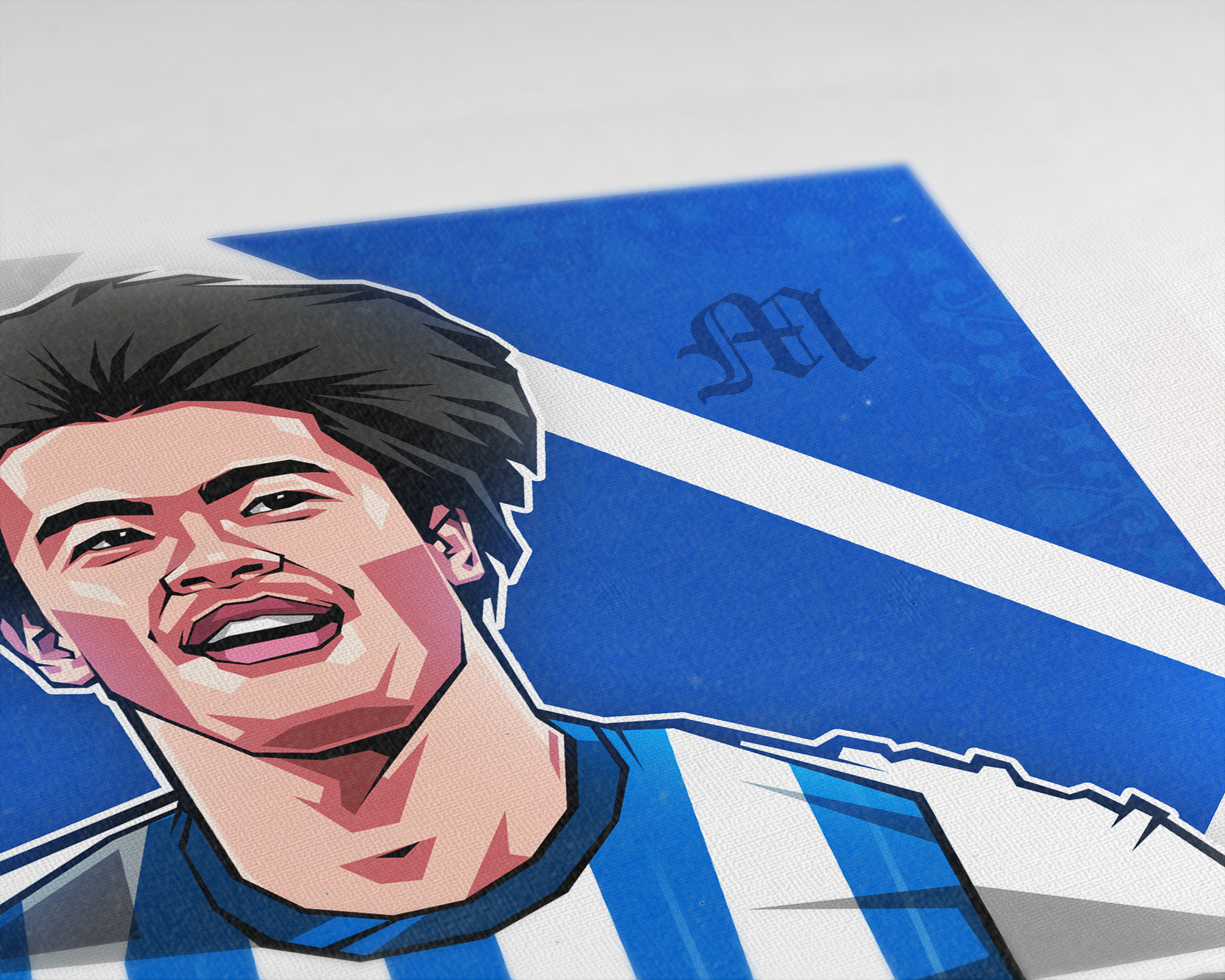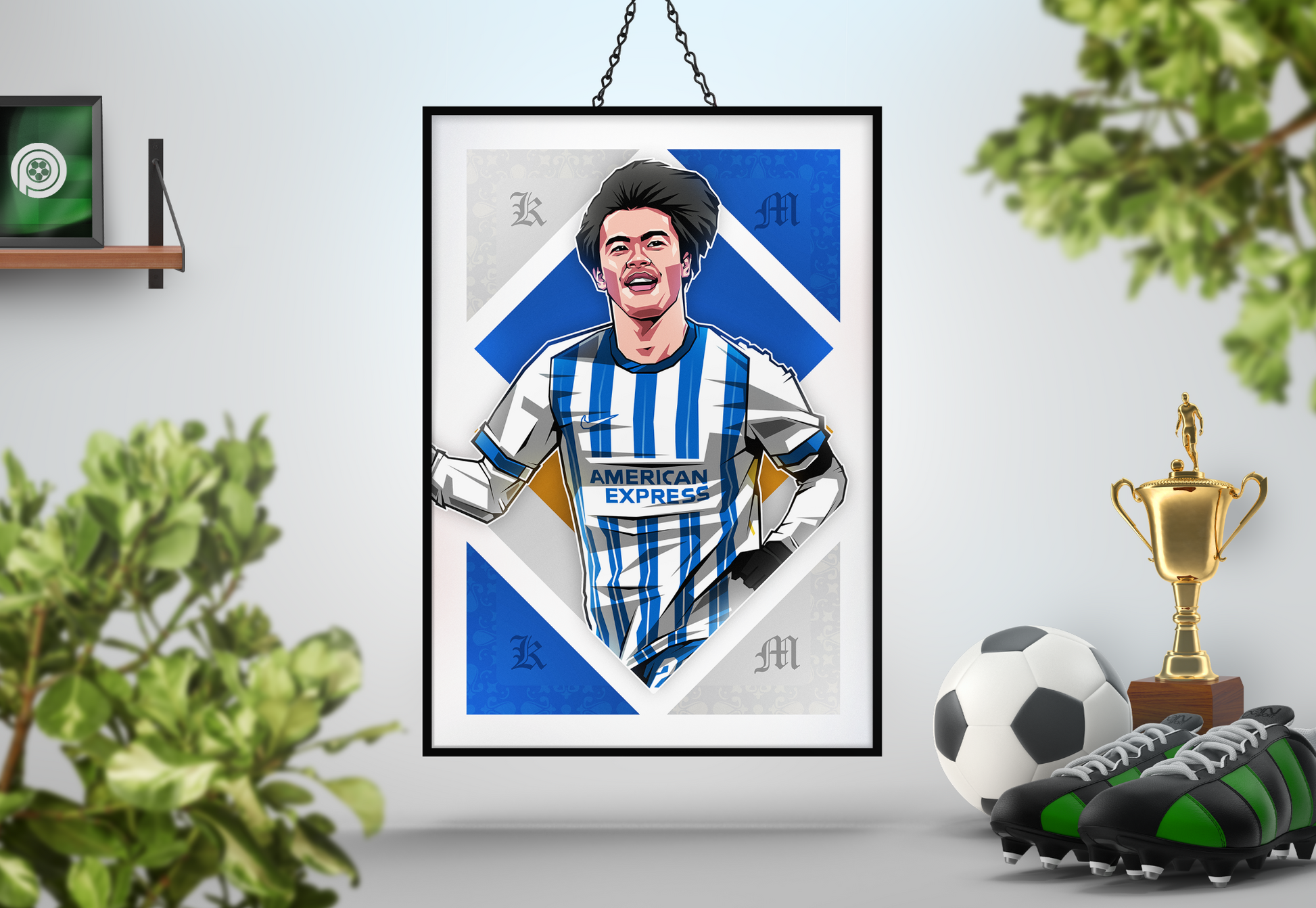 A football art print for fans of Kaoru Mitoma, our art prints feature unique designs and bespoke illustrations printed on premium quality paper and shipped worldwide. This exclusive print features an art piece of Kaoru Mitoma in our 'Diamonds' design, with the Japan player playing for Brighton & Hove Albion who currently play Premier League football. We pride ourselves on using the highest quality paper and printing processes to create our prints, giving you a sharp and colourful piece that can take pride of place on your wall for years to come. Frame not included.