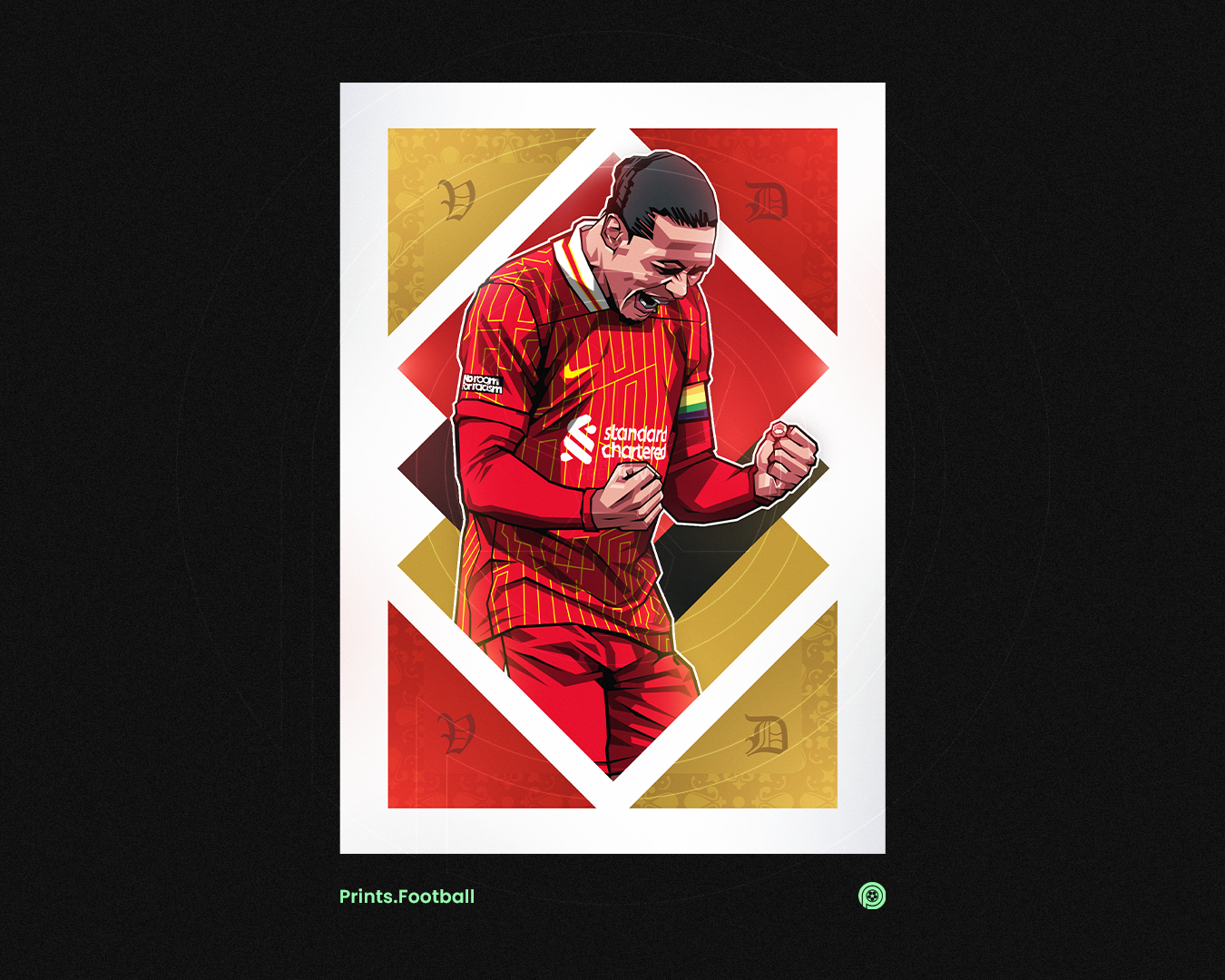 Virgil Van Dijk Limited Edition Gold Foil Diamonds Art Print